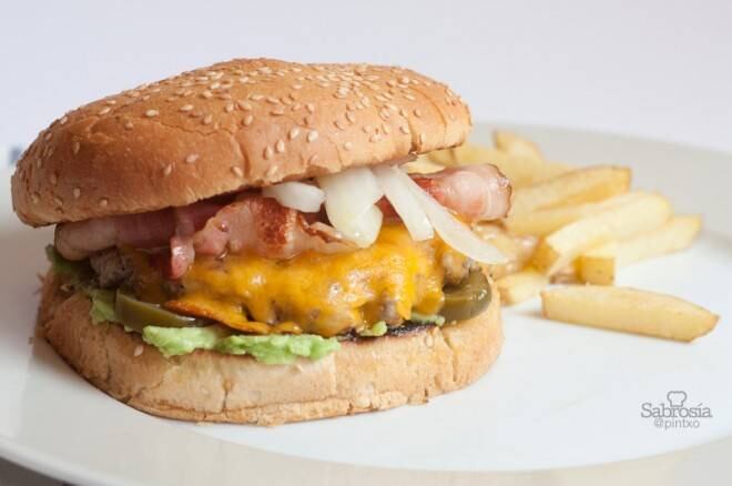 El placer de comer una rica hamburguesa hecha en casa no se puede calificar en una escala normal. Hay que ir más allá dentro de los placeres gastronómicos. Además está la posibilidad de hacerla con los ingredientes que queráis, no hay ataduras, la imaginación vuela. Es el caso de esta hamburguesa con jalapeños y aguacate que hice hace unos días.