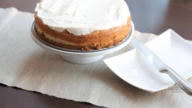 Una vez fría la tarta, batimos la crema agria con el azúcar hasta que resulte cremosa. No conseguiremos que monte igual que la nata tradicional. La untamos por encima y servimos.