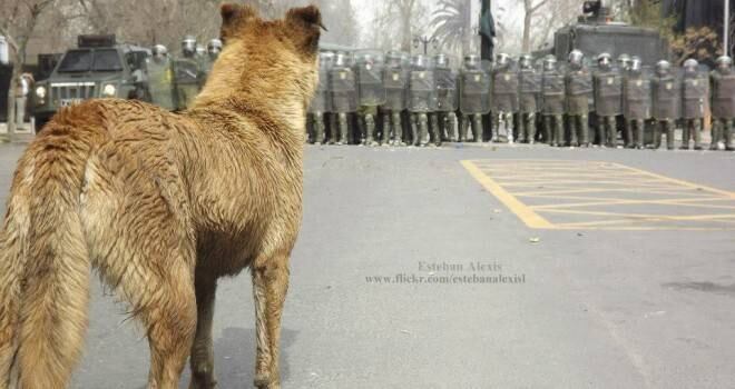 ¿Son anarquistas los perros de Santiago Centro? Parece ridículo dotarles de una filiación política, pero mirando estas fotos parece que estos animales se han convertido en un verdadero sujeto social que expone su propia vida por defender lo que cree justo.