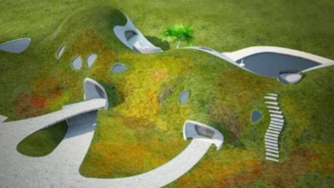 Una forma de volver a las cavernas se podría decir, de la mano de afamados arquitectos como Malcolm Wels, Philippe Delage y Antoine Strauss. Este nuevo diseño ofrece viviendas protegidas por la tierra -aunque para construirlas es necesario excavar bastante el terreno, lo que implica un gran gasto energético y un fuerte impacto inicial- que se integran de forma perfecta al paisaje y en invierno usan el calor que se absorbe en verano para temperar el espacio y aprovechar así las propiedades térmicas de la tierra.