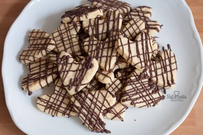 Es muy importante no amasar en exceso la masa de las galletas ya que si no se dice que coge liga, y pude tender a encoger en el horno. También podemos derretir un poco de chocolate y ponerle cobertura por encima.