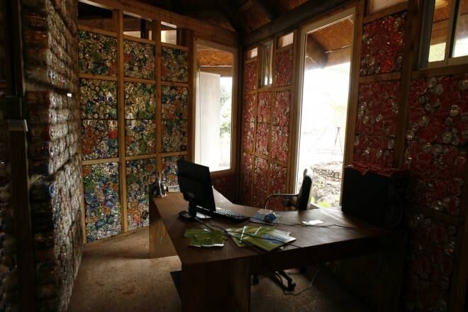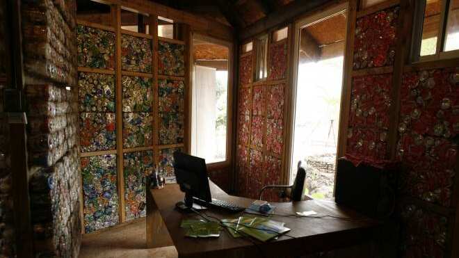 Por otra parte, los muros interiores fueron hechos a partir de botellas rellenas de otros plásticos que no pueden ser reciclados, mientras que para el exterior se utilizaron ladrillos de latas de bebidas compactadas en bloques. El techo fue fabricado con cajas de tetra, que luego de ser modificadas, quedaron convertidas en superficies impermeables.