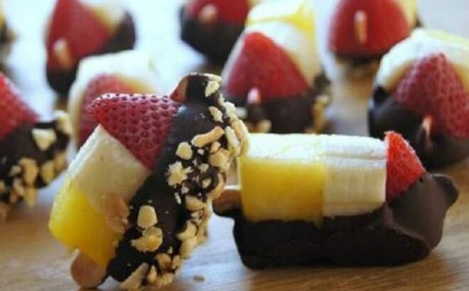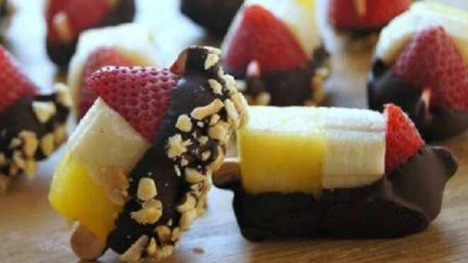 Con sólo algunos ingredientes tendrás en tu mesa una divertida forma de comer frutas, con un toque de chocolate y nueces. ¡Encantador!