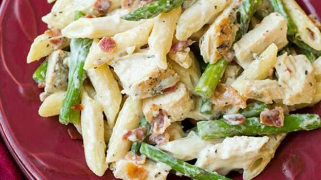 Cómo hacer la pasta cremosa con pollo, tocino y espárrago