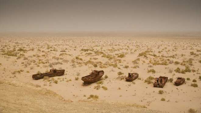 Actualmente, lo único que queda del Mar de Aral es una presa que se construyó por un intento de Kazajstán de salvar el lago, logrando conservar sólo la parte norte de éste. De lo demás solo se aprecia un paisaje totalmente desértico y abandonado, plagado de barcos que quedaron inmóviles y hacen recordar que aquel lugar alguna vez fue un lago.