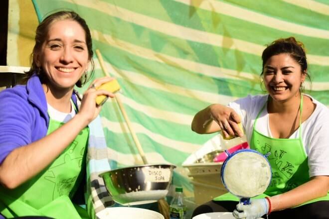 Acá todo es voluntario; hay una base de 170 personas que están encargados de la jornada de recolección. Ésta se lleva a cabo un día antes de la Disco Sopa y una vez que se tienen los alimentos, éstos son lavados y desinfectados para que estén aptos para ser consumidos.