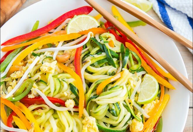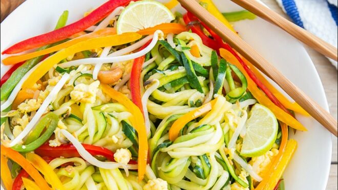 Si buscas comer algo rico como pad thai pero con ingredientes más livianos, esta receta es lo que estabas buscando. La idea principal de este pad thai es que los noodles no sean a base de arroz, sino que con zapallo italiano.