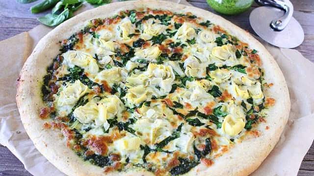 Te presentamos esta deliciosa y sencilla alternativa, muy baja en calorías y grasas. Las espinacas son ricas en ácido fólico y las alcachofas contienen bastante fibra. Si tienes invitados y poco ánimo de cocinar algo más elaborado, esta pizza es perfecta, pues tardarás poco tiempo y también cuidarás la línea.