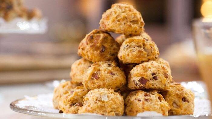 Galletas o scones de tocino, queso cheddar y cebolla