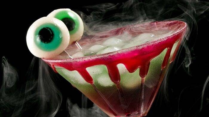 En algunos casos puedes preparar el típico vodka con naranja, pero con un shot en una jeringa; un tradicional ponche, pero con ojos nadando o bien, con cabezas encogidas. Inspírate con las siguientes imágenes.
