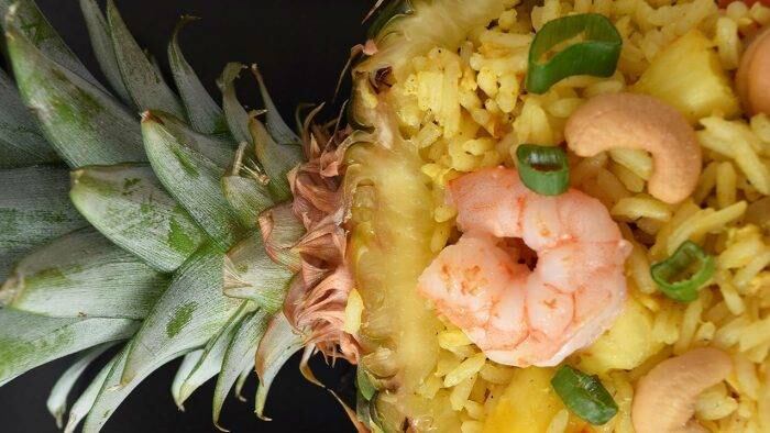 Parece complejo a simple vista, pero en realidad es más sencillo de lo que piensas. El Kao Pad Saparon, o simplemente, piña rellena, es un plato de origen tailandés que se puede preparar con pollo o camarones.