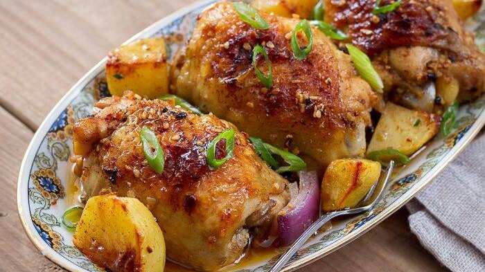 - Poner papas cortadas, cebolla, pimentones, aceitunas.