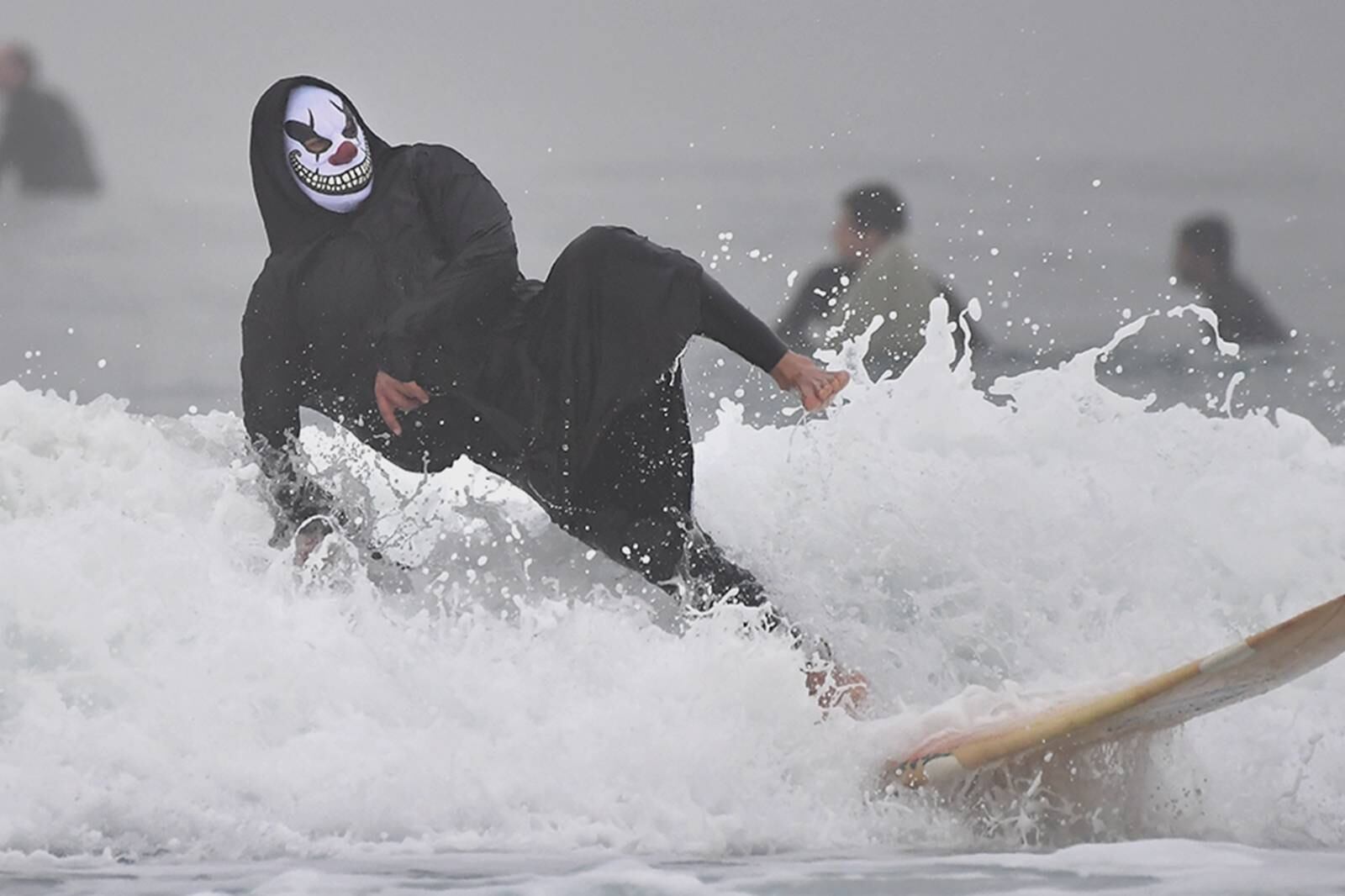 ¿Te imaginas ver a un payaso espeluznante surfeando, o incluso a la misma muerte? Pues eso fue lo que ocurrió el pasado sábado en la playa de Newport, en la costa oeste de Estados Unidos.