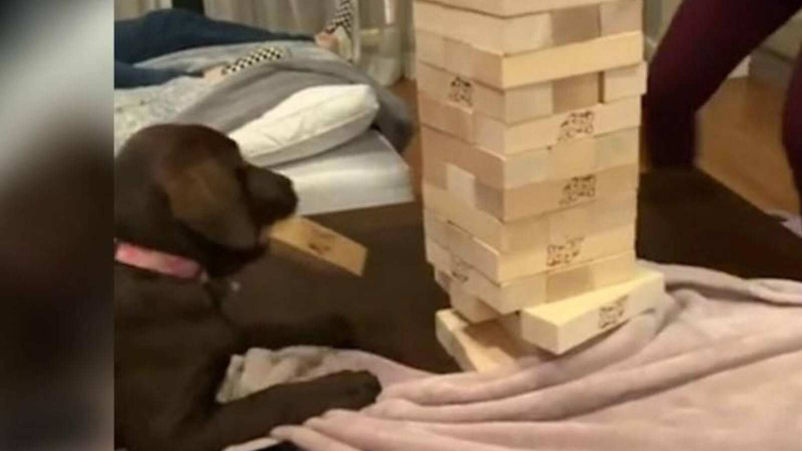 Un perrito demostró ser el mejor jugador de Jenga y ya es toda una sensación en las redes sociales. Y es que venció a un grupo de jóvenes que estaban jugando con él.