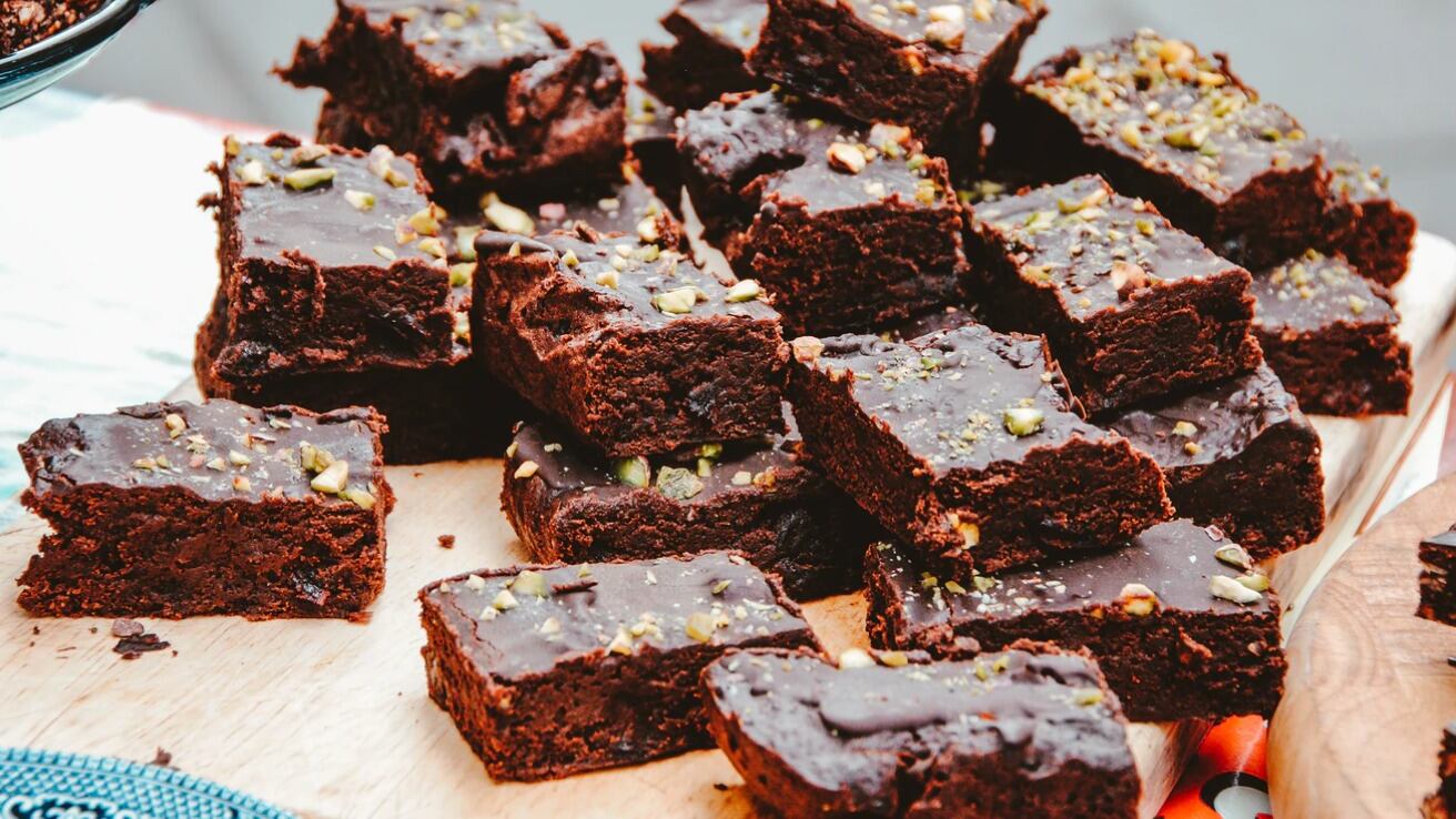 - Rellena moldes de bombones o una fuente o molde rectangular de aproximadamente 25 cm x 15 cm forrado con papel de hornear.