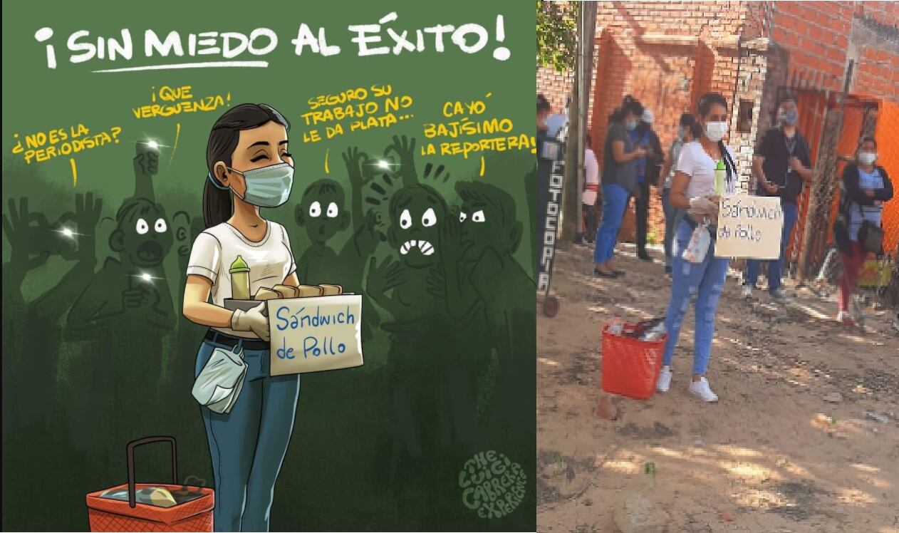 Su publicación no solo se hizo viral, sino que otros circularon una caricatura inspirada en su fotografía vendiendo sus sánduches para contar sus propias historias de emprendimiento en pandemia.