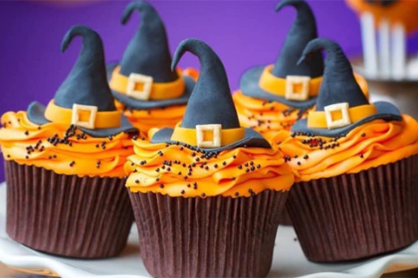 También puedes valerte del uso de los conos de barquillas que puedes bañarlos en chocolate fundido para que se logre una capa uniforme, una vez que estén firmes puedes decorarlos con un poco de lluvia de chocolate de colores para darle un toque auténtico y tenebroso para luego completar tu cupcake Halloween con un poco de betún de chocolate y el resultado final será similar al de un sombrero de bruja.