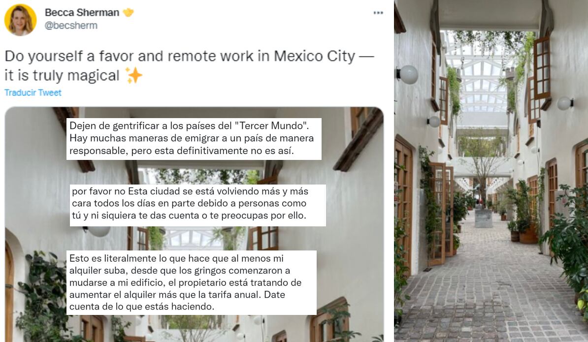 “Esto es literalmente lo que hace que al menos mi alquiler suba, desde que los gringos comenzaron a mudarse a mi edificio, el propietario está tratando de aumentar el alquiler más que la tarifa anual. Date cuenta de lo que estás haciendo”.