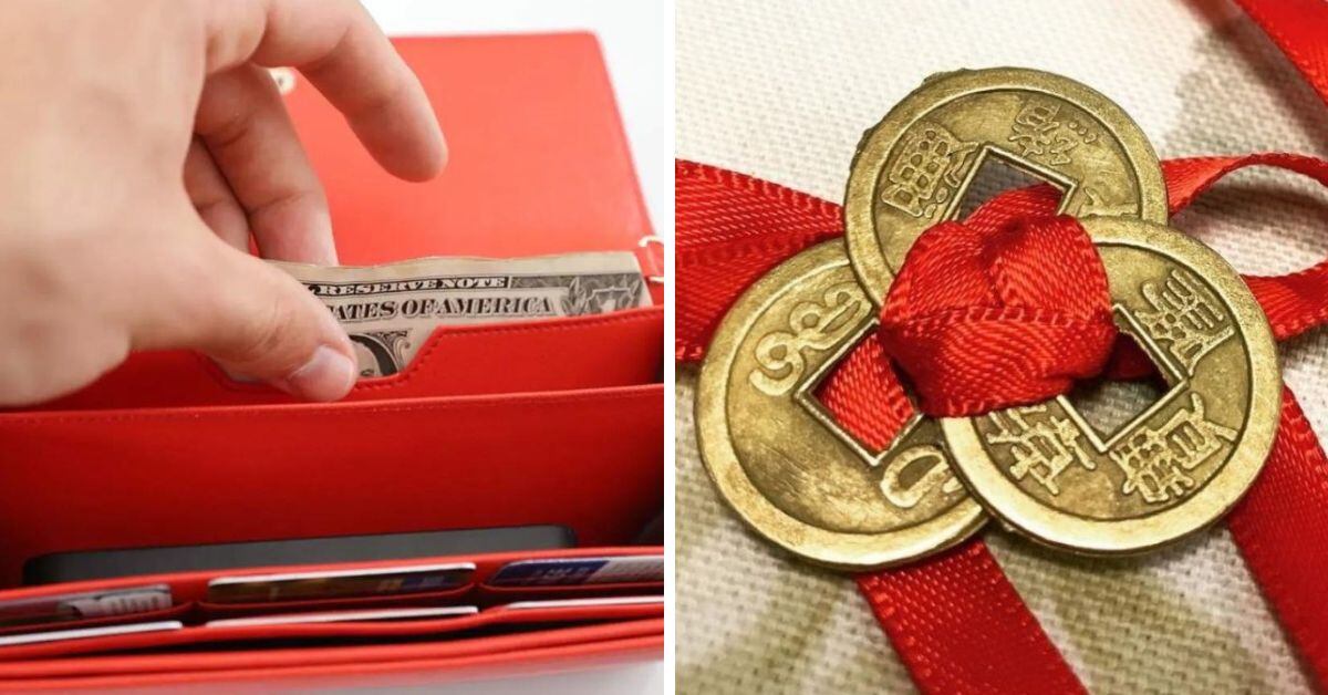 - Según el Feng Shui, en la cartera no debe faltar una moneda china o 3 monedas anudadas con una cinta roja. Se deben colocar con la cara yang mirando hacia nosotros.