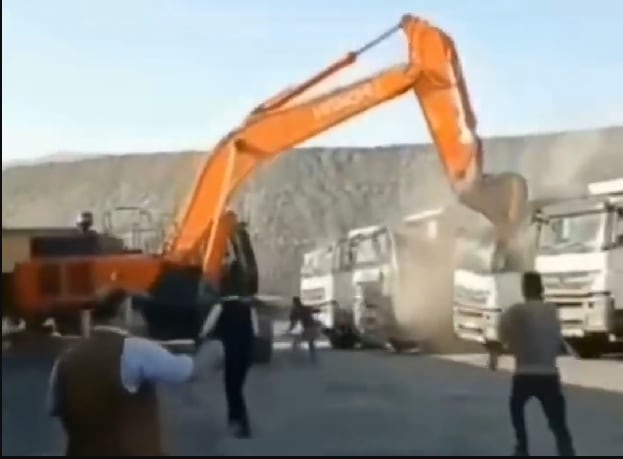 Imágenes que circularon rápidamente en redes sociales evidencian el momento en que la retroexcavadora impacta de forma reiterada contra los camiones estacionados. Los golpes destrozaron carrocerías, parabrisas y, en algunos casos, provocaron daños en los motores.