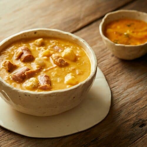 Pero, cuando llega el Carnaval, el maíz se viste de gala para el Mote Pata. Esta es una sopa con personalidad propia, densa y nutritiva, que se aleja de cualquier caldo común. Su secreto reside en la pepa de sambo licuada, que le otorga una consistencia aterciopelada, mientras que el lomo de cerdo, la longaniza y el cuero le dan una potencia que revive a cualquiera. Es un plato que une a las familias; prepararlo es un ritual que anuncia alegría y fiesta.
