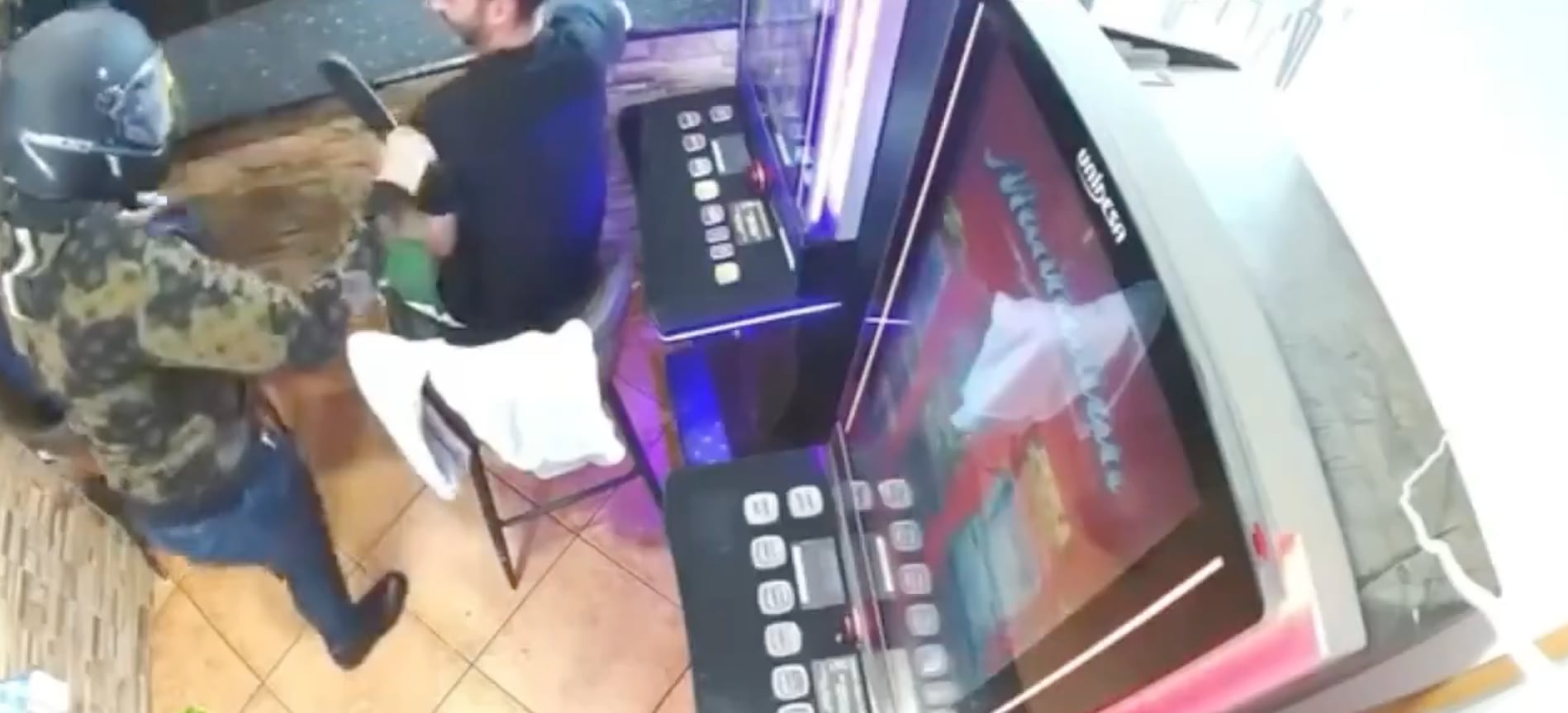 El incidente, que quedó registrado por las cámaras de seguridad del local, donde muestra al individuo ingresando con un casco de motocicleta puesto para ocultar su identidad. Blandiendo el arma blanca con agresividad, el hombre comenzó a exigir la recaudación gritando en inglés: “The money, money, money; now” (el dinero, ya).