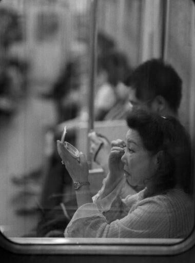 No todas usan 20 productos; algunas no usan ninguno, o sólo corrector, o sólo máscara, o esas dos cosas. O algunos más, pero no 20. Esas personas pueden maquillarse en el metro o en la micro. He visto a personas haciéndolo en horarios no peak, o bien sentadas o bien apoyadas contra la puerta del lado que no se abre. Lo encuentro bastante elogiable, poder maquillarse en movimiento, es todo un deporte de alta exigencia. Y al contrario de muchas personas, no me molesta en lo más mínimo.