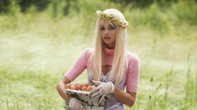 En las imágenes podemos ver a la modelo con una peluca rubia adornada con una corona de flores muy parecida a la que usaba Cicciolina en sus apariciones públicas. Las medias por encima de la rodilla le dan un toque inocente pero a la vez muy sexy.
