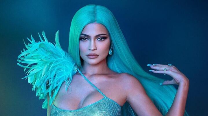 En el after party Kylie lució un vestido de Versace de un vibrante color aguamarina. Su cabello tenía el mismo color. Antes había apostado por un look morado total.