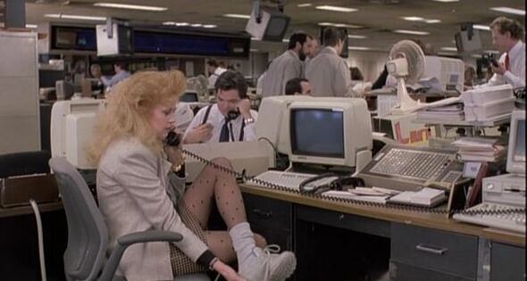 1988: Melanie Griffith encarnaba el prototipo de mujer trabajadora y ejecutiva norteamericana en la película “Working Girl”. Su personaje, Tess McGill, era como las miles de mujeres que en su país iban con zapatillas deportivas al trabajo para cambiarlas por tacones en la oficina. En la era de los trajes para trabajar, encarnada por Donna Karan, Armani, Thierry Mugler, los tacones eran considerados símbolo de poder, como desde hace siglos en la parte masculina. Tanto se popularizó, que llegó a ser imperativo en el dress code corporativo.