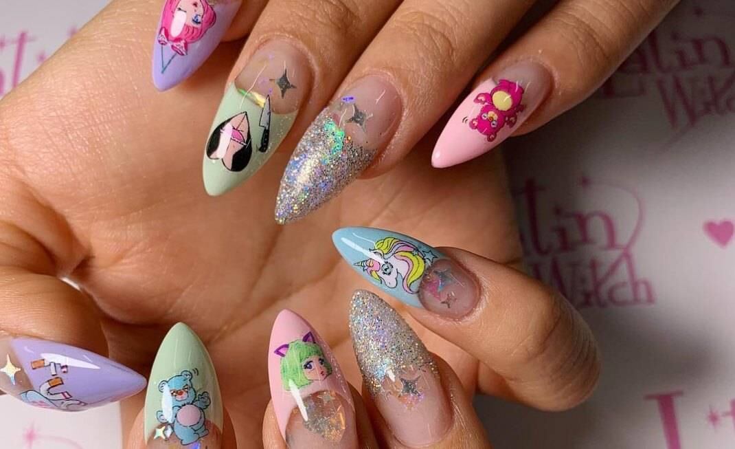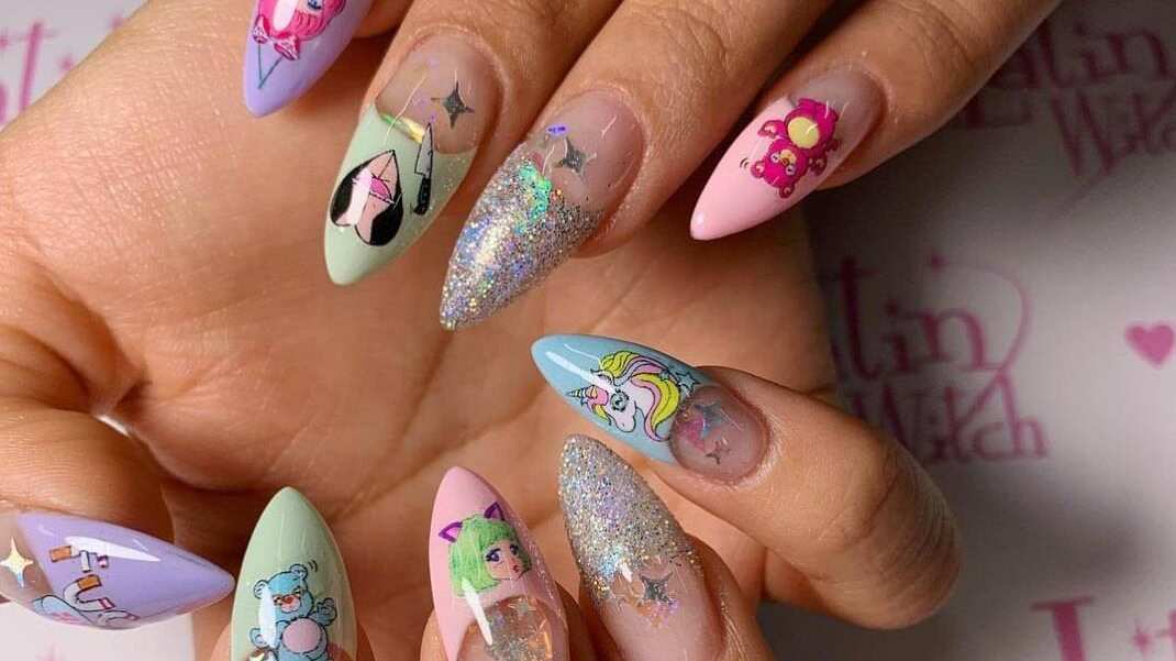 Si no puedes decidir por un solo tono, puedes probarlos todos, el verano es la mejor época para llevar una manicura colorida como esta.