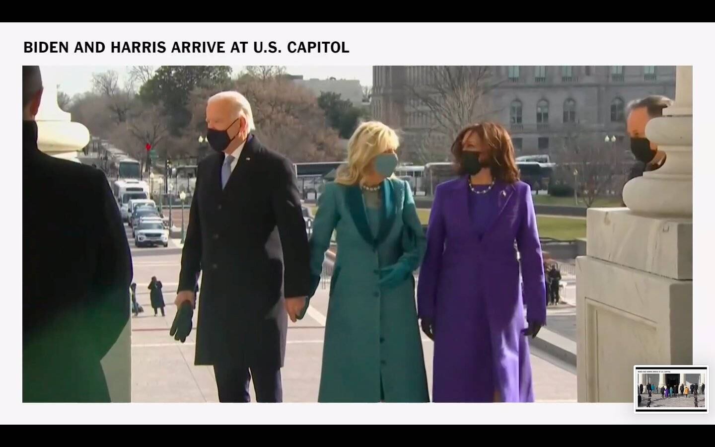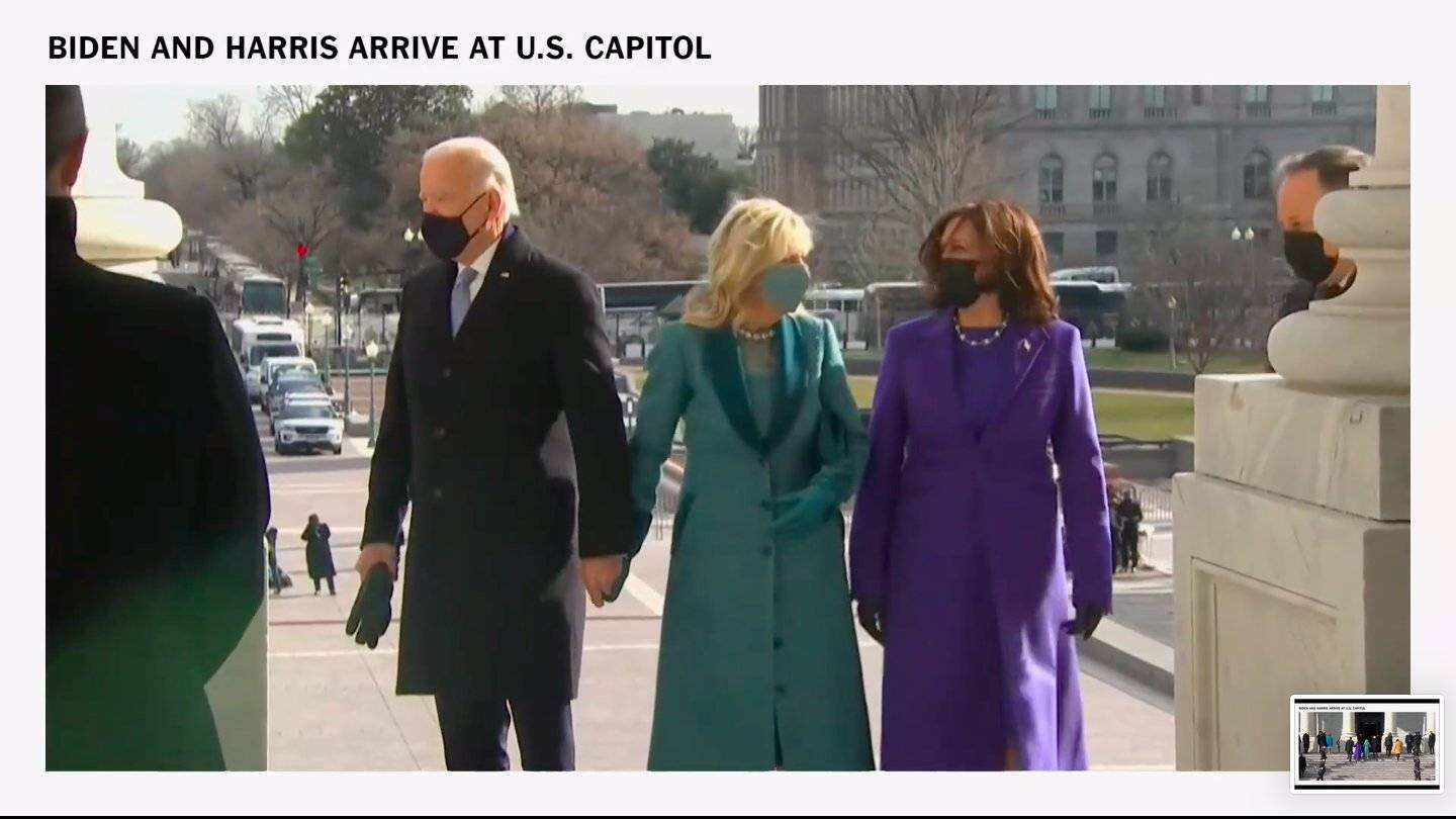Joe Biden viste Ralph Lauren mientras que Dr. Jill Biden se decidió por un diseñador emergente, Markarian. Ambos en azul, es un claro statement de respetar la historia y la tradición americana pero también dar paso a lo nuevo. #BidenHarrisInauguration pic.twitter.com/kjKyhjimvU