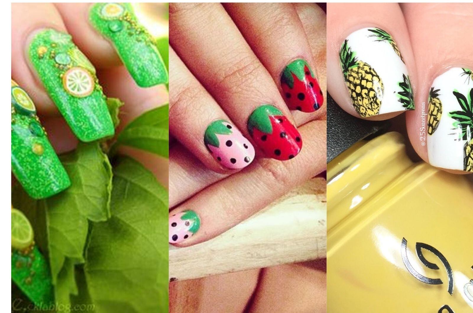 Los diseños de uñas frutales están muy de moda. Hacen ver tus manos divertidas y a la vez elegantes, con el color y el sabor que caracteriza a la temporada.