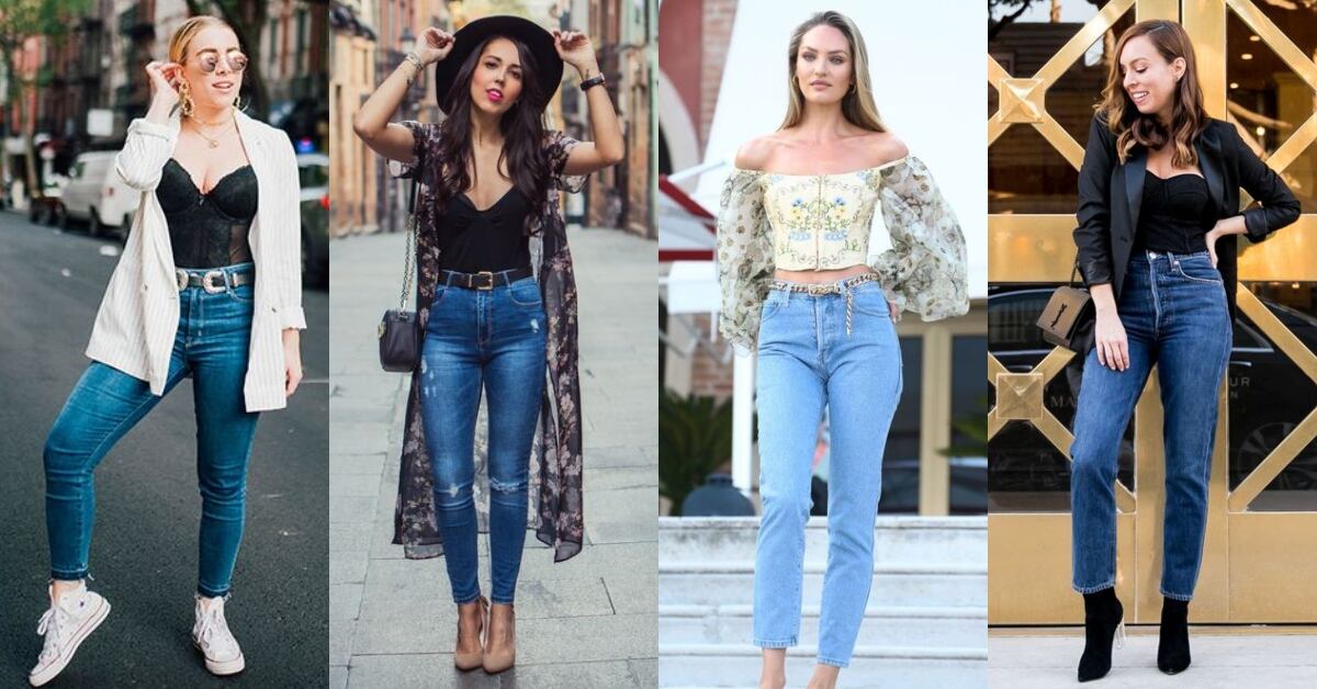 Por ejemplo, la combinación de corset con jeans es una de las más utilizadas. Hay algunas referentes, al estilo de Bella Hadid o Hailey Bieber, que los llevan con vaqueros de tiro bajo pero con cualquier modelo lucirán geniales.
