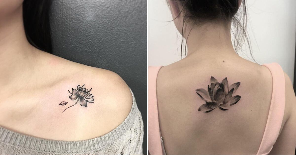 Las más minimalistas pueden decantarse por un tatuaje de flor de loto negra pequeño. La ubicación es de la preferencia del cliente, pero en la espalda se ven de lo más bonitos.