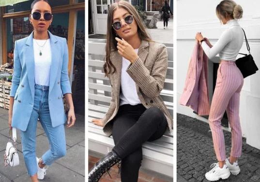 - Combina prendas formales como blazers, pantalones de tela, faldas, camisas con complementos como unos tenis blancos o sneakers, esto te hará lucir fresca, pero mantener la elegancia.