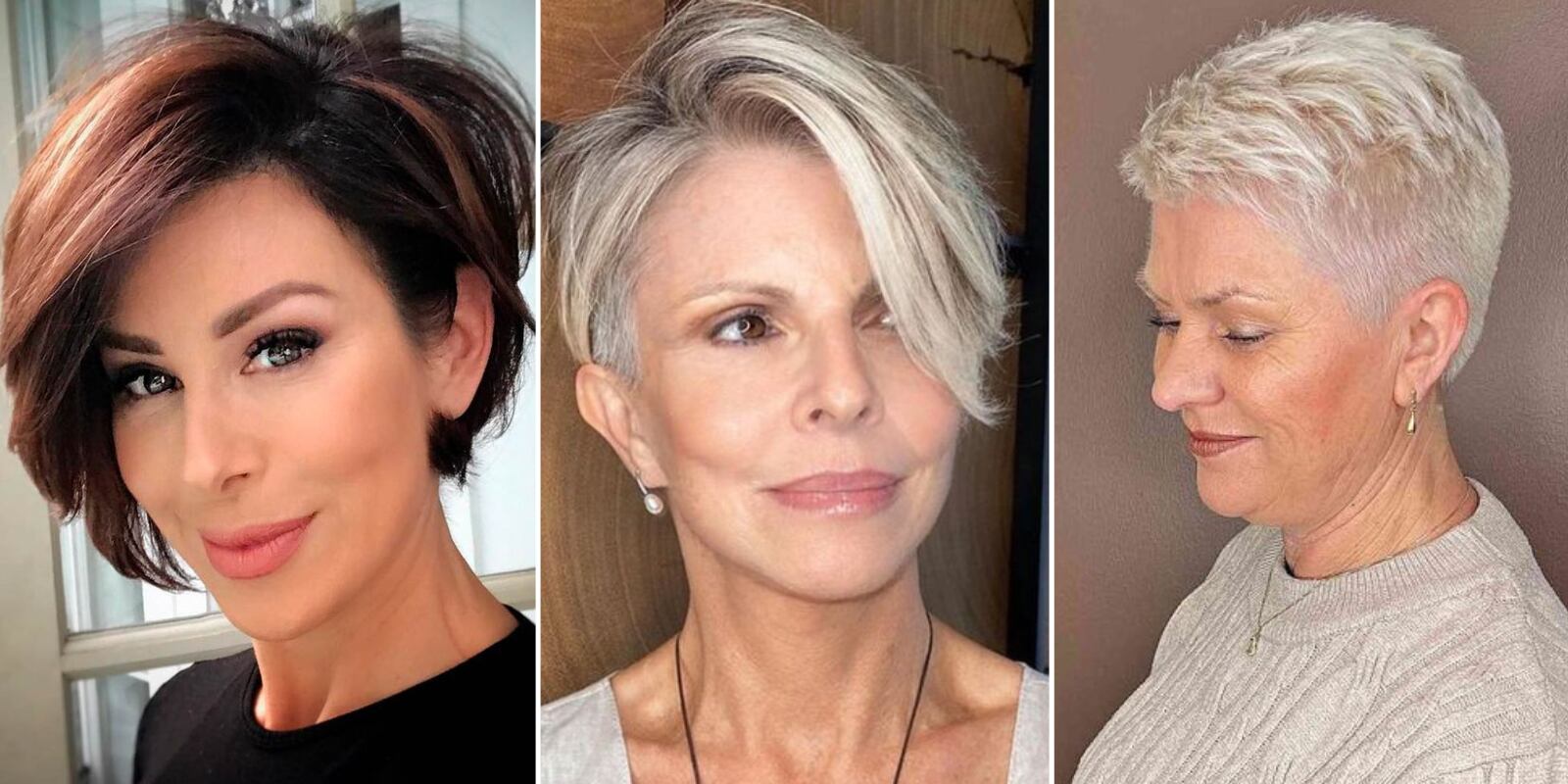 Entre los cortes de pelo pixie para mujeres de 40 a 60 años destaca este look que combina lo mejor de los dos mundos presentados previamente. La diferencia entre ambos radica en su ligero desfilado y hasta flequillo que da un aspecto más relajado y a la vez, moderno.
