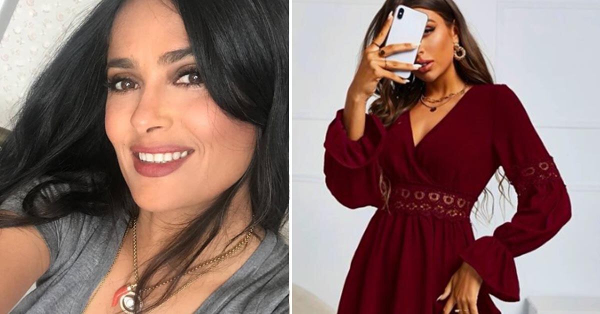 Looks con vestidos burdeos para ser la más elegante y con clase este 2024 como Salma Hayek