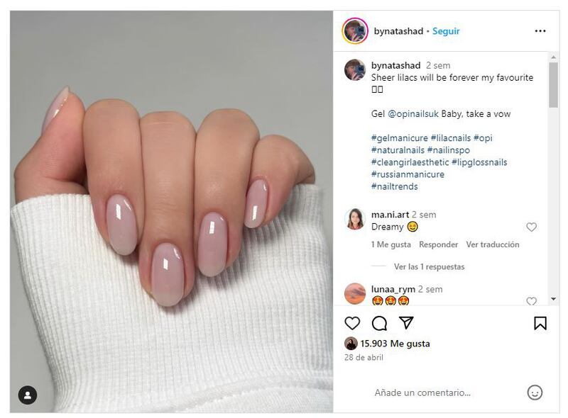 La manicura 'lip gloss' es una de las grandes tendencias de 2024 | (Instagram)