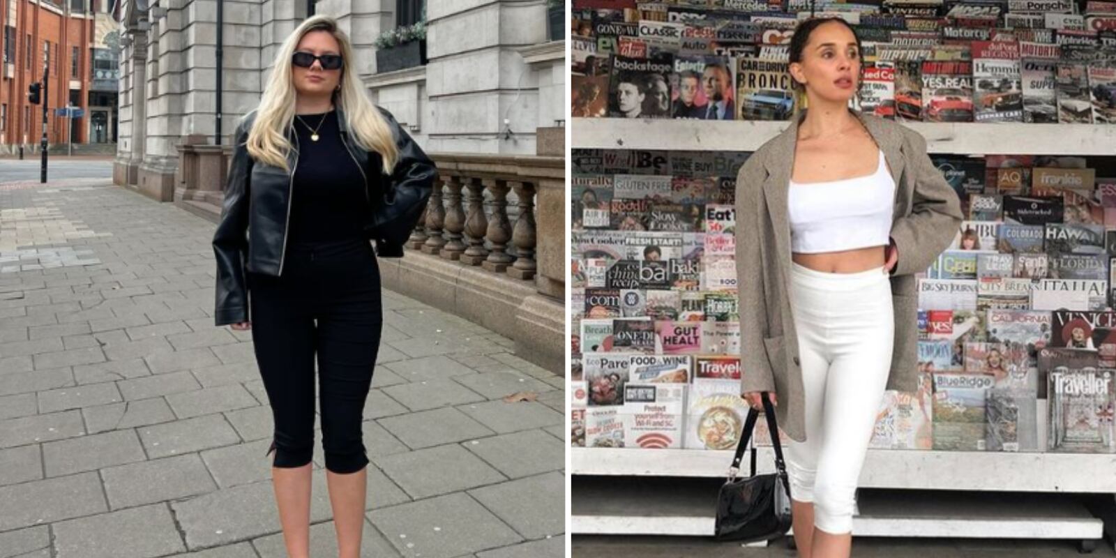 Por ejemplo, puedes utilizar un top pegado a tu figura pero acompañar con un blazer, una bomber jacket o cualquier tipo de chaqueta en general para generar un equilibrio visual mucho más elegante y favorecedor.