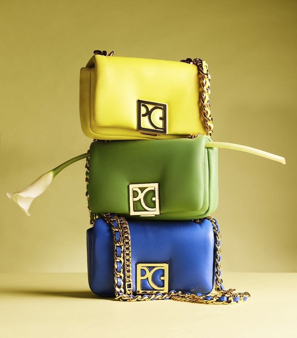 Esta misma filosofía se refleja en los bolsos de la colección. Los diseños Homenaje Acolchado y Varnish destacan por su acabado brillante y sofisticado, perfectos para completar cualquier look. La paleta de colores elegida para estos bolsos se alinea perfectamente con las prendas, creando una cohesión visual armoniosa.
