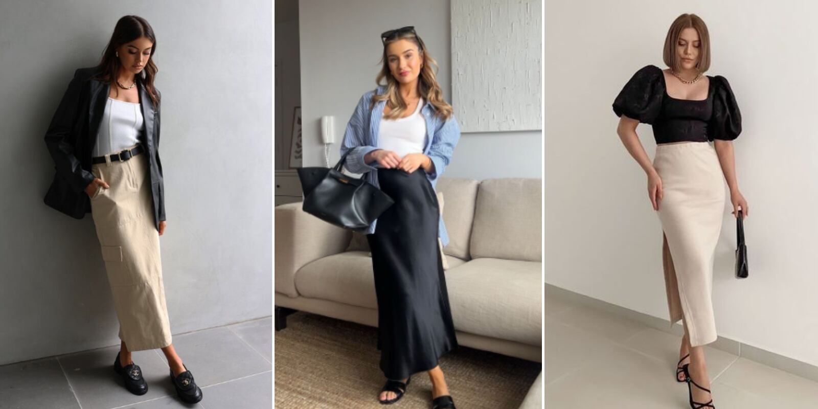 Este año, la moda toma inspiración de las tendencias de los años noventa, lo que significa que la falda columna puede ser combinada con diversos estilos, desde casual hasta formal. Los modelos inspirados en la sastrería, están en auge. Estas faldas pueden ser tanto rígidas, con cortes estructurados, como en versiones más desenfadadas para aquellas que buscan un estilo más relajado sin sacrificar la elegancia.