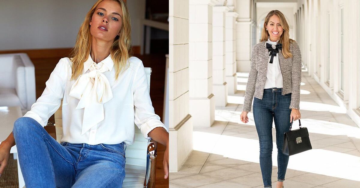 Las blusas con lazo en el cuello serán tendencia en el 2025 y así las puedes llevar con jeans