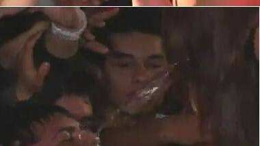 Todo parte con una Roxana usando un vestido polera corto, escotado y que si lo hubiera usado con jeans, se veía hasta bonito. Sí se veía muy pechugona, pero nada como cuando estaba con la camiseta de la selección. Parecía que llevaba un par de pelotas de fútbol de repuesto. Luego se quita la polera y queda con un bustier-colaless-strapless.