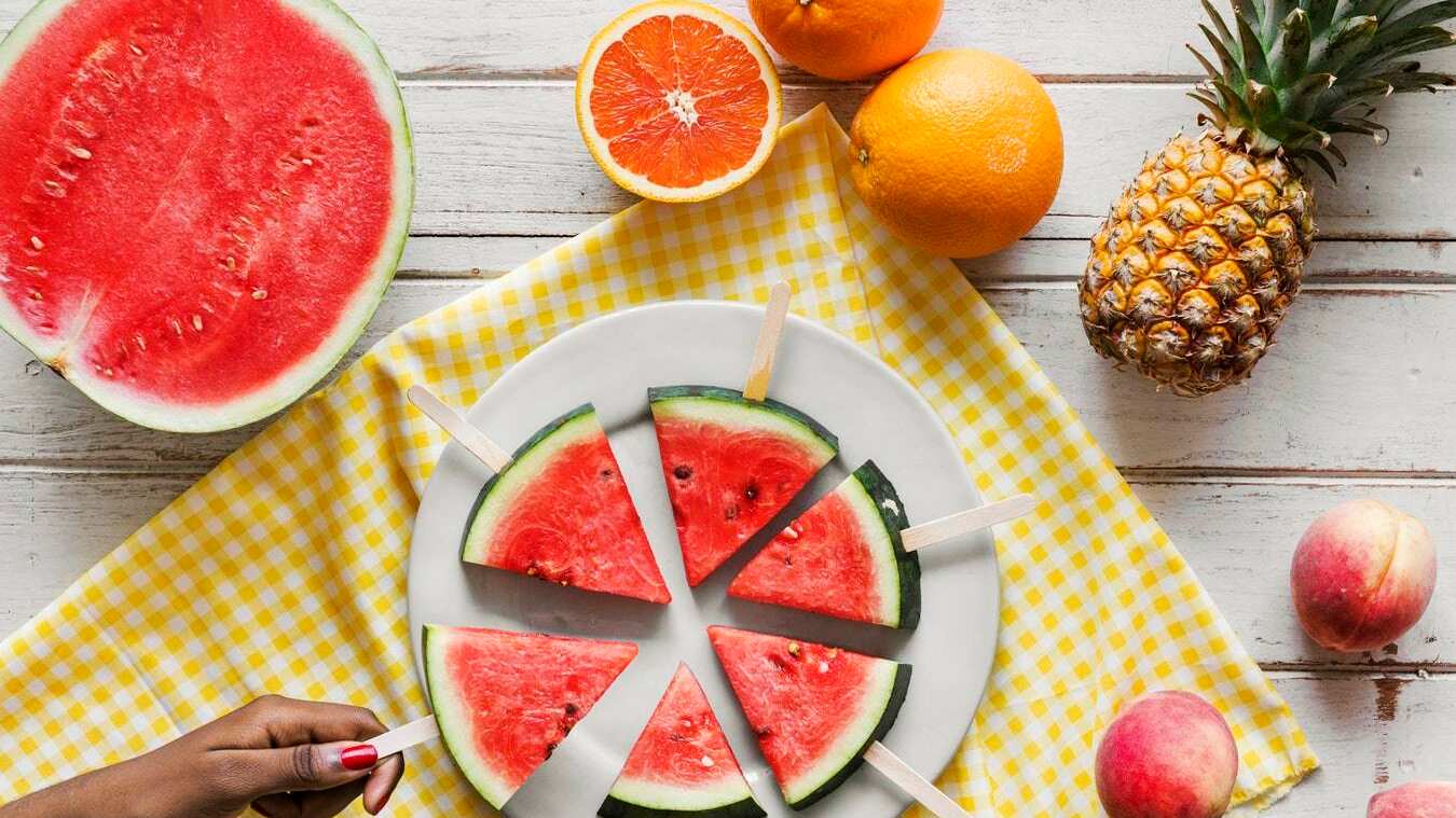 Para merendar, puedes comer dos rodajas de sandía o un vaso con jugo.