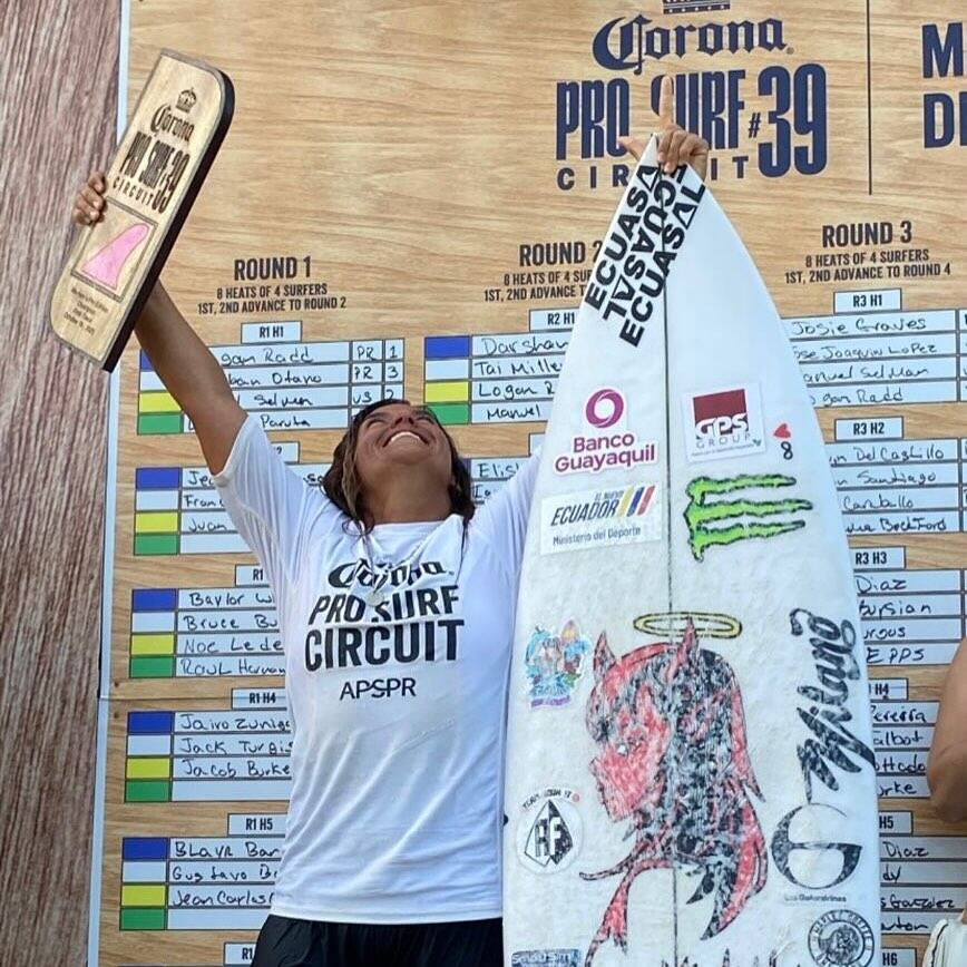 En un mar desafiante y ante rivales de toda América, la ecuatoriana Mimi Barona brilló con luz propia al coronarse campeona del Corona Pro Surf Circuit 2025 en la playa Middles de Isabela, Puerto Rico. Con emoción y entrega, dedicó su victoria a su hermano, cuyo apoyo sigue presente.