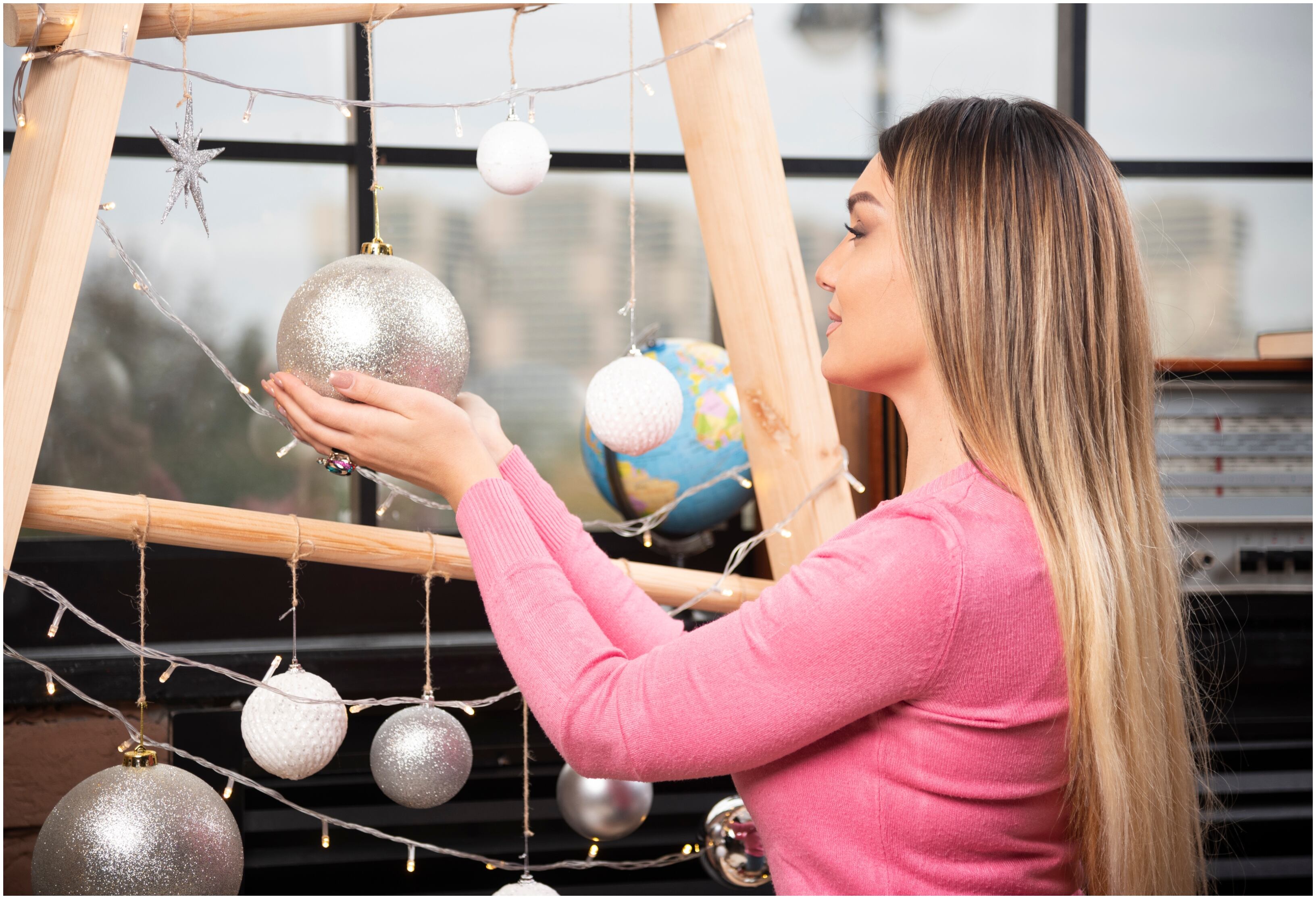 Desde enormes esferas brillantes y figuras iluminadas hasta cascanueces de tamaño real, las opciones son tan variadas como los estilos. Una idea sencilla pero espectacular es agrupar varias esferas sobre una cama de ramas de pino o dentro de macetas grandes; al añadirles luces cálidas, el resultado es irresistible.
